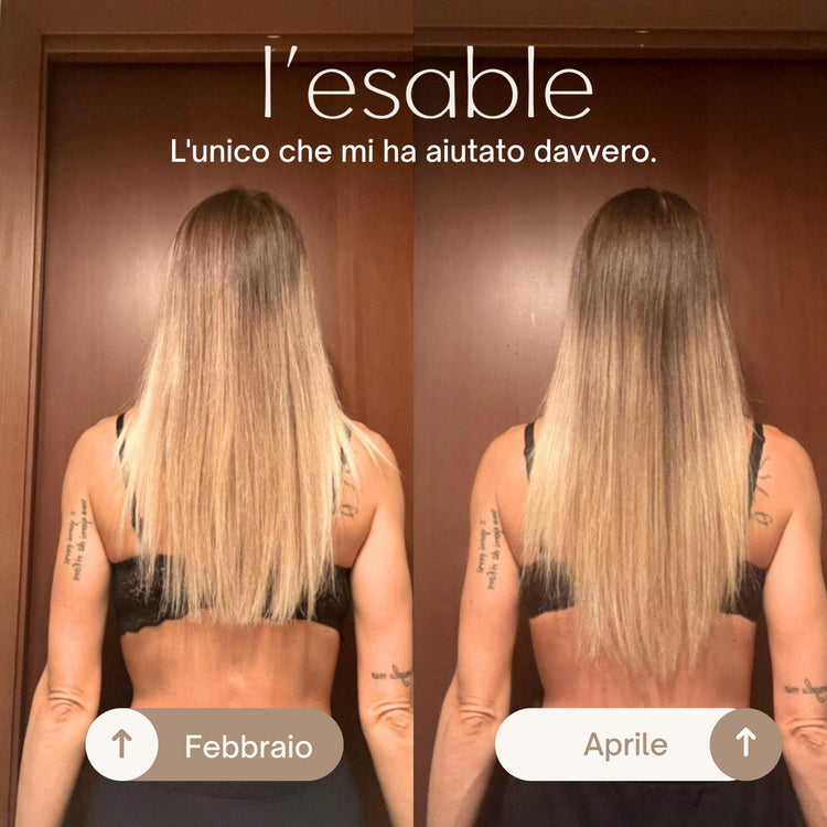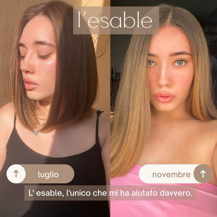 “Uso l’ esable da pochi mesi e anche il mio parrucchiere ha notato la qualità dei miei capelli! Finalmente sono riuscita ad avere punte piene anche dopo una decolorazione I miei capelli non sono mai stati cosi !"