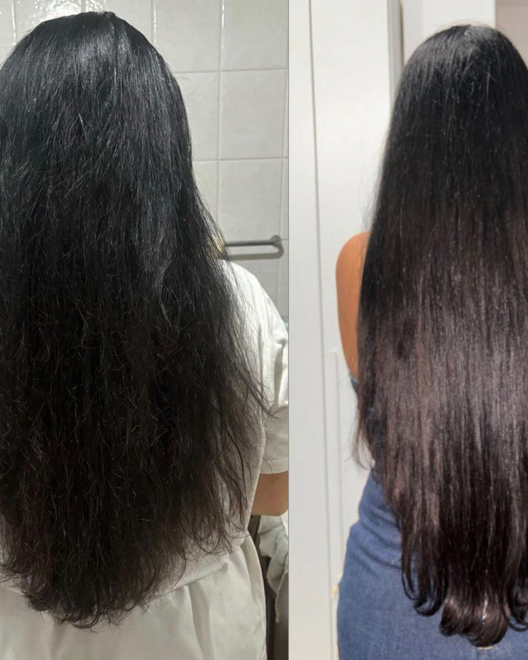 - Distribuisci 5-6 gocce su lunghezze e punte.